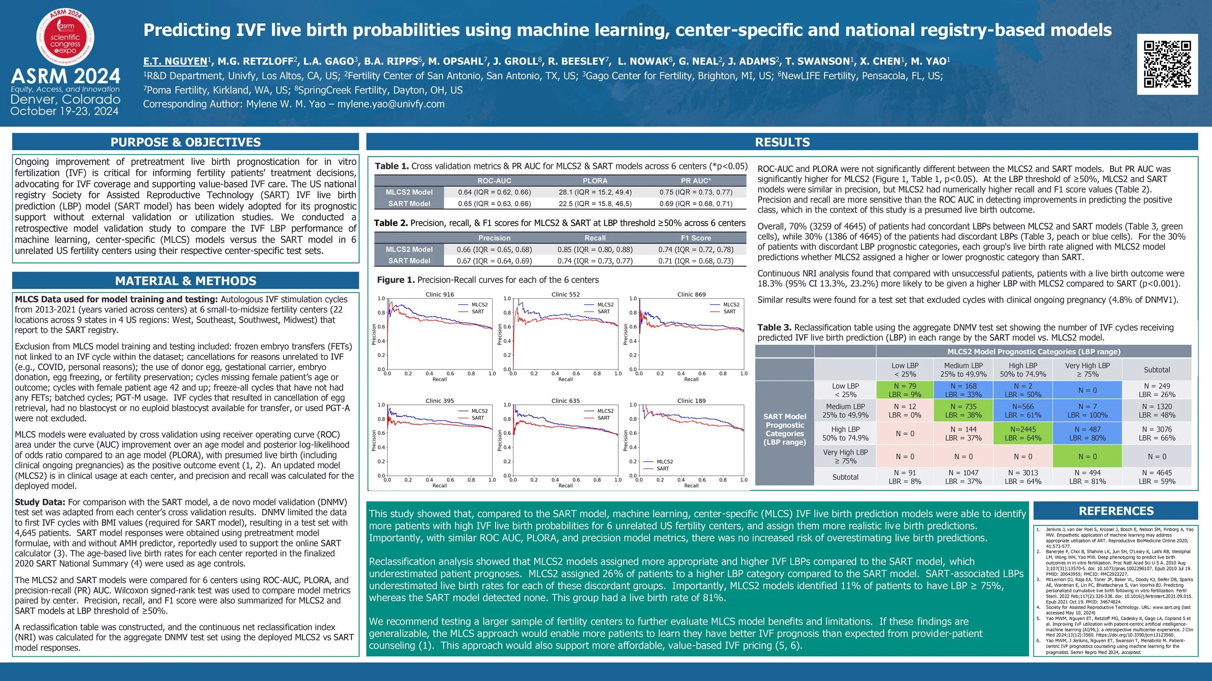 Yao MWM, Nguyen ET, Retzloff MG, Cadesky K, Gago LA, Copland S et al. Improving IVF utilization with patient-centric artificial intelligence-machine learning (AI/ML): a retrospective multicenter experience. J Clin Med 2024;13(12):3560. https://doi.org/10.3390/jcm13123560.